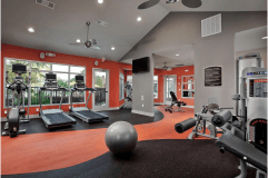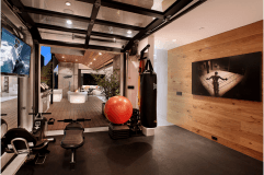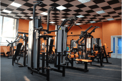 На первом этаже комплекса расположены силовые тренажеры и спортивный инвентарь. Отдельно выделена кардио-зона и боксерский ринг.